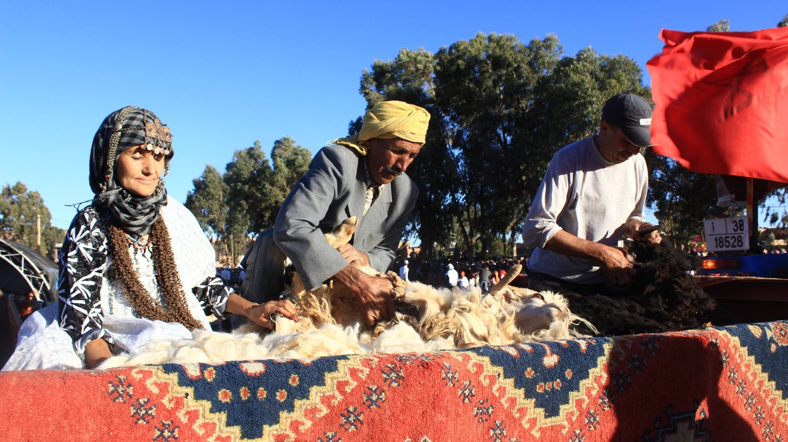 في عشية نفس اليوم انتقل الوفد الى مدينة تازناخت حيث حضراستعراضا لموكب أهم مراحل نسج الزربية الوازكيتية .