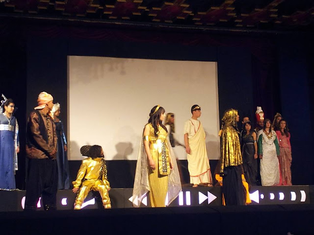 والخارج ،صعد المنصة الأنيقة تلة من الطلاب والطالبات في عرض بهي للملابس السنيمائية