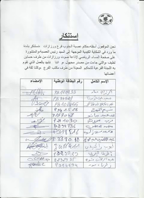 عصبة الجنوب فرع ورزازات كما هو دون زيادة او نقصان :