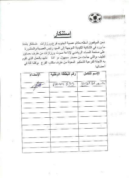 : ” توصلت صفحة المساء الرياضي لإذاعة صوت ورزازات بعريضة من تنسيقية حكام