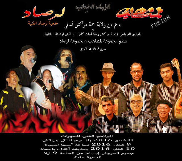 مراكش آسفي وبشراكة مع مجموعة من المجالس المنتخبة بالمدينة الحمراء ، سهرات فنية كبرى تحييها المجموعتين الغنائيتين المغربيتين