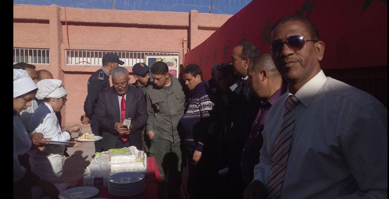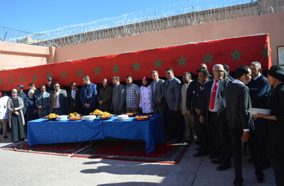 للسياسة الرشيدة التي ما فتئت تنهجها المديرية العامة لإدارة السجون من اجل اشراك جميع الفعاليات والمؤسسات ذات الصلة في تعامل وثيق مع المؤسسات السجنية عبر التراب الوطني والمتمثلة في الانفتاح على فعاليات المجتمع المدني من اجل الرقي بالفضاء السجنى عبر اشراك هذه الفعاليات في اوراش كبرى تروم تحسين وضعية نزلاء السجون عامة والنزيلات علي وجه الخصوص وفق برنامج مسطر لهذه الغاية . وتشكل الأيام الوطنية والدولية فرصة لإدخال الفرحة والبهجة على نفوس النزلاء .النموذج يأتي اليوم من المعهد المتخصص للتكنولوجيا التطبيقية الفندقية والسياحية بورزازات وعلى راسه السيد المدير محمد ختوش  والطاقم المرافق له .والذين أبوا الا ان يهدوا لنزيلات السجن المحلي بورزازات  “حلوى العيد ” احتفاء بهن خلال هذا اليوم العظيم ..